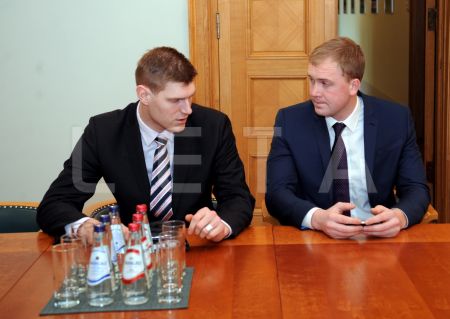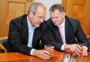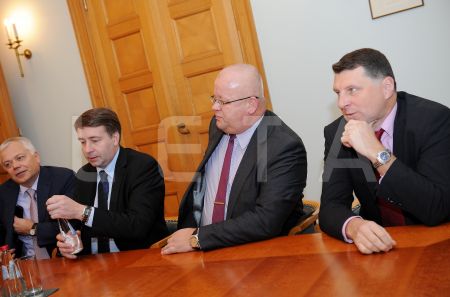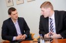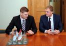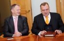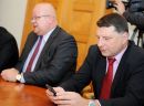 Eiropas Parlamenta deputāts Roberts Zīle (no kreisās) un Nacionālās ...