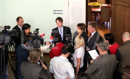 "Latvijas dzelzceļš" prezidents Uģis Magonis (no kreisās), Ministru ...