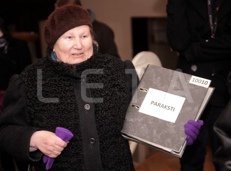 Latvijas Pensionāru federācijas pārstāve ieradusies Saeimas namā, lai ...