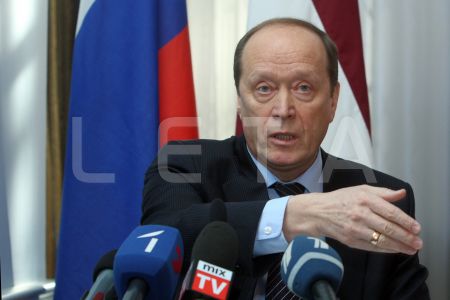 Krievijas vēstnieks Latvijā Aleksandrs Vešņakovs piedalās preses ...