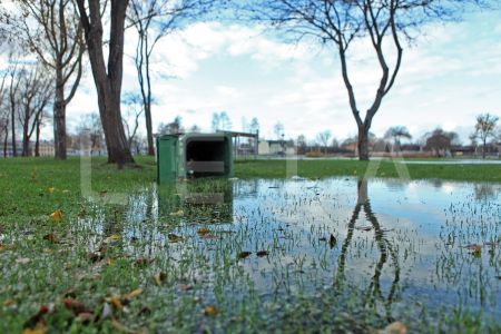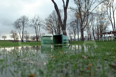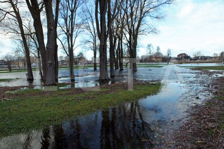Pēc vētras applūdušais aktīvās atpūtas parks Lucavsalā.