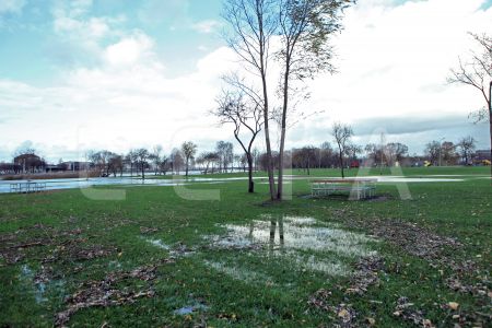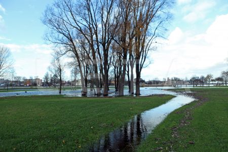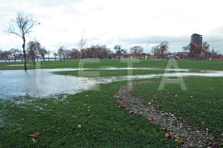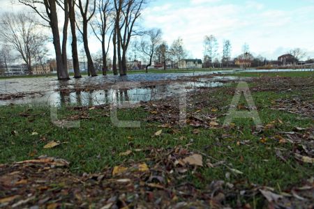 Pēc vētras applūdušais aktīvās atpūtas parks Lucavsalā un rudens lapu ...