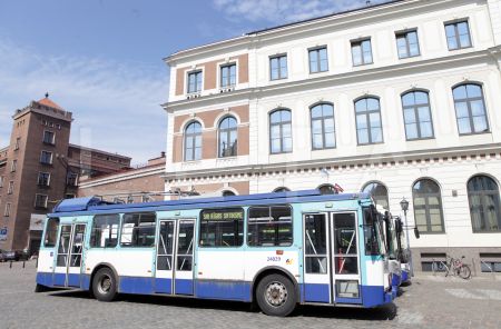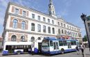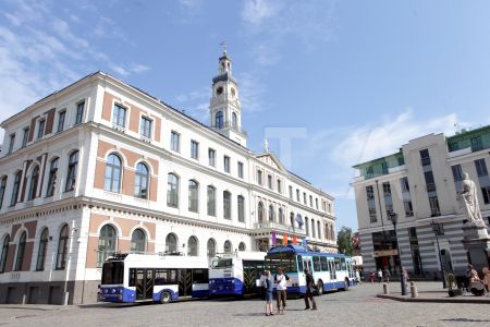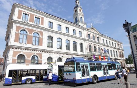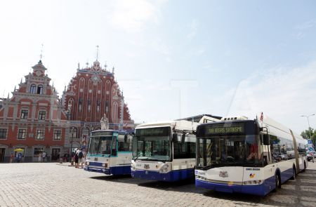 Trojejbusi pie Rīgas domes, kur notiek "Škoda Electric" jauno ...