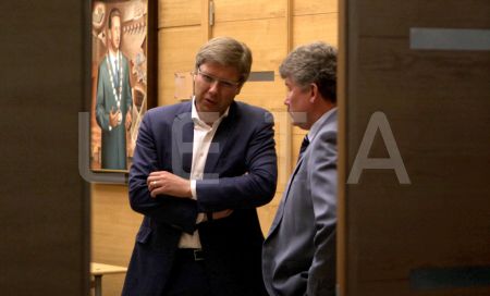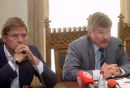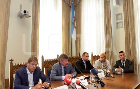 Rīgas domes priekšsēdētājs Nils Ušakovs (no kreisās) un pašvaldības ...