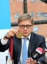Rīgas domes priekšsēdētājs Nils Ušakovs atbild uz žurnālistu ...