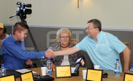 Latvijas Ārstu biedrības prezidents Pēteris Apinis un sabiedrisko ...