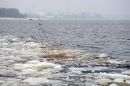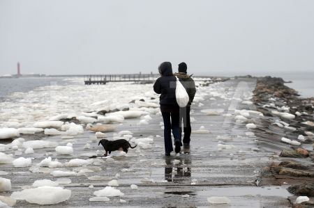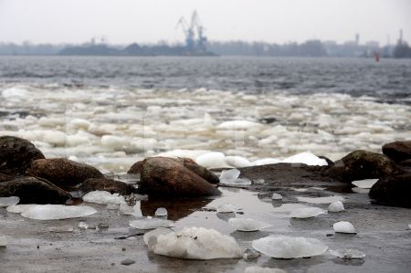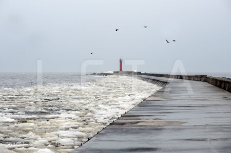 Ledus uz Mangaļsalas mola.