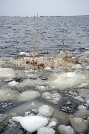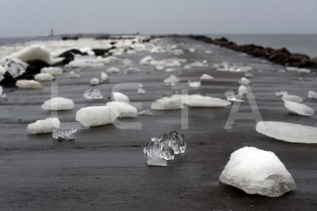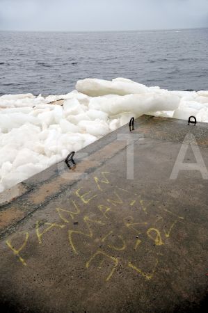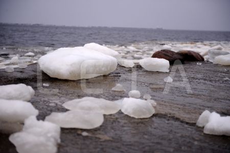 Ledus gabals uz Mangaļsalas mola.