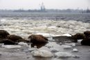 Ledus Daugavā pie Mangaļsalas mola.