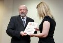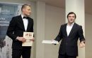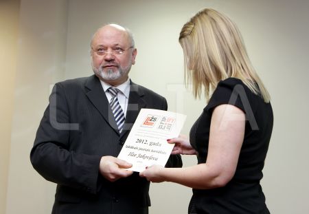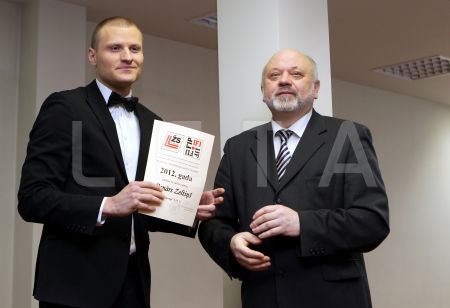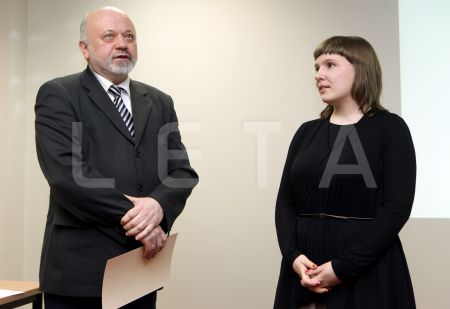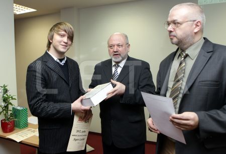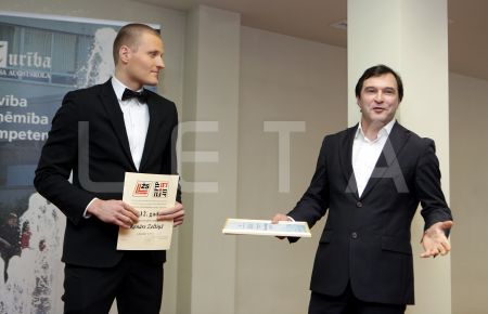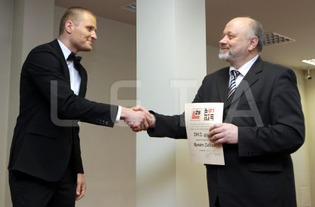 Konkursa žūrijas vadītājs Miervaldis Mozers pasniedz "Žurnālistikas ...