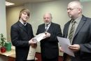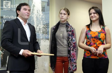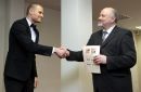 Konkursa žūrijas vadītājs Miervaldis Mozers (no kreisās) pasniedz ...