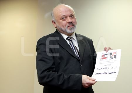Konkursa žūrijas vadītājs Miervaldis Mozers ar saņemto Mentora titulu ...