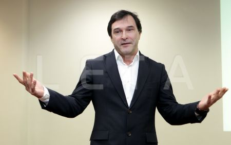 Latvijas Žurnālistu savienības priekšsēdētājs Juris Paiders uzrunā ...