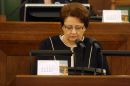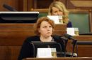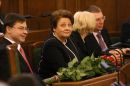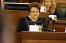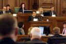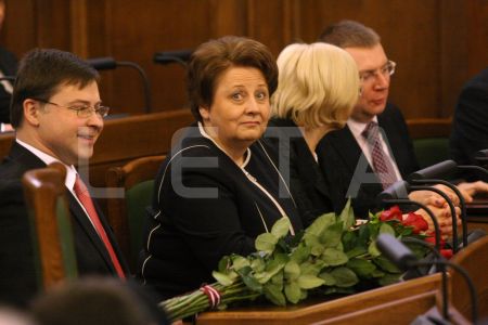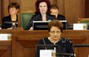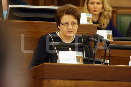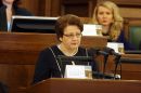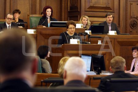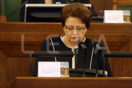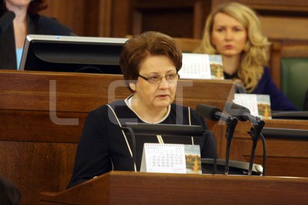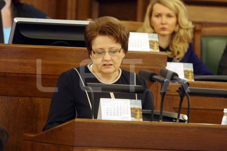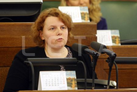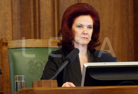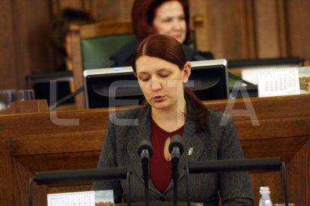 Saeimas priekšsēdētāja Solvita Āboltiņa Saeimas ārkārtas sēdes laikā, ...