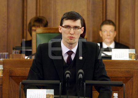 Saeimas deputāts Andrejs Elksniņš piedalās Saeimas ārkārtas sēdē, ...