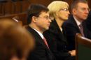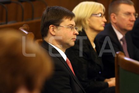 Demisionējušais Ministru prezidents Valdis Dombrovskis (no kreisās) ...