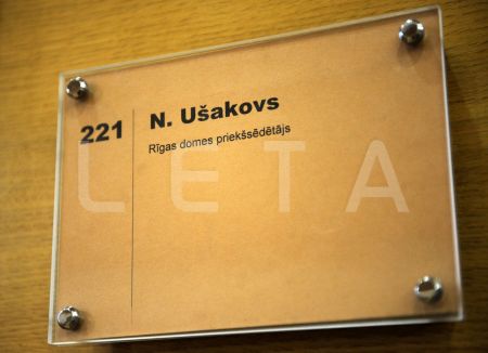 Plāksne pie Rīgas domes priekšsēdētāja Nila Ušakova kabineta.