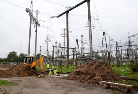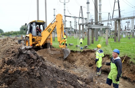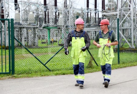 Strādnieki AS "Latvijas elektriskie tīkli" apakšstacijas "Viskaļi" ...
