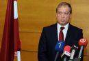 Rīgas domes priekšsēdētājs Nils Ušakovs piedalās preses brīfingā par ...