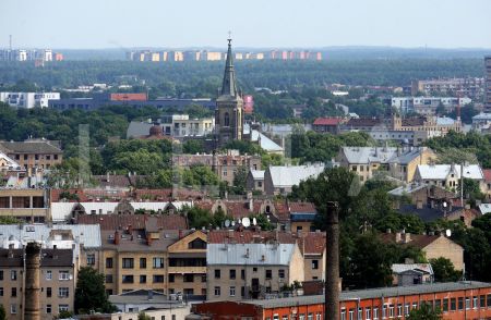Skats uz Sv. Pāvila luterāņu baznīcu un namu jumtiem no Latvijas ...