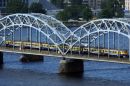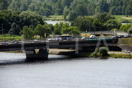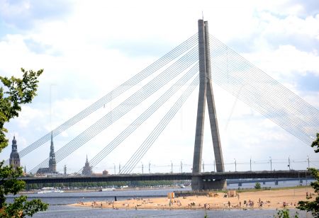 Skats uz Salu tilta nobrauktuvi no Latvijas Zinātņu akadēmijas ēkas.
