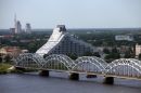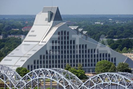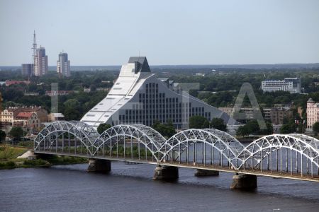 Skats uz Dzelceļa tiltu un Latvijas Nacionālās bibliotēkas ēku.