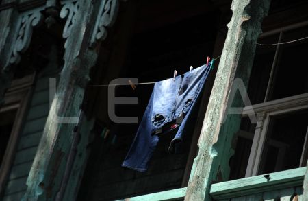 Skats uz māju Marijas ielā no Latvijas Zinātņu akadēmijas ēkas.