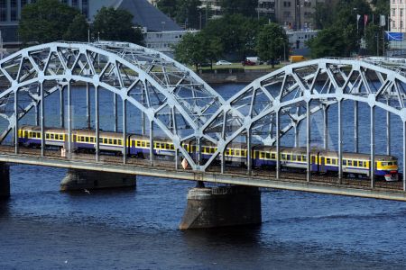 Skats uz Dzelceļa tiltu pār Daugavu.