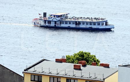 Skats uz upes kuģi-restorānu "Misisipi" no Latvijas Zinātņu ...