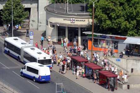 Skats uz sabiedriskā transporta pieturvietu un ieeju Centrālajā ...