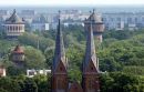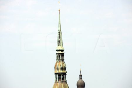 Skats uz sv. Pētera un Doma baznīcu torņiem.