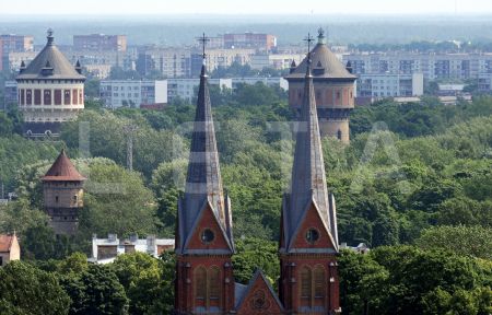 Skats uz ūdenstorņiem un Svētā Franciska Romas Katoļu baznīcu no ...