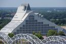 Skats uz Latvijas Nacionālās bibliotēkas ēku.