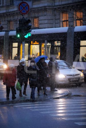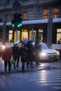 Cilvēki šķērso Krišjāņa Barona un Merķeļa ielas krustojumu.