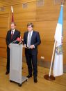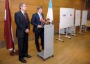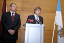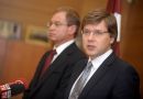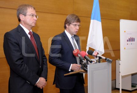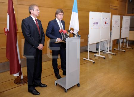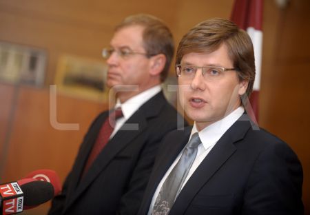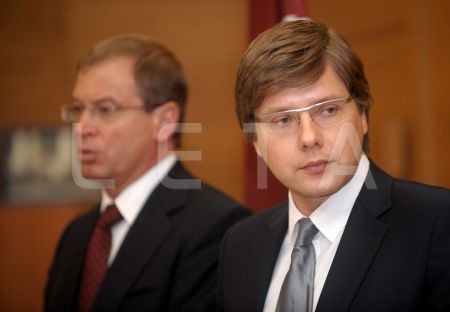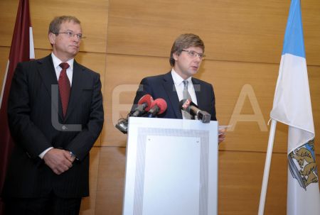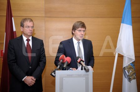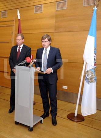Rīgas domes priekšsēdētājs Nils Ušakovs (no labās) un domes ...
