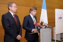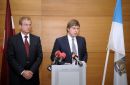 Rīgas domes priekšsēdētājs Nils Ušakovs preses brīfingā informē par ...