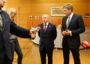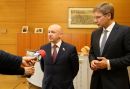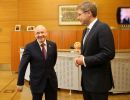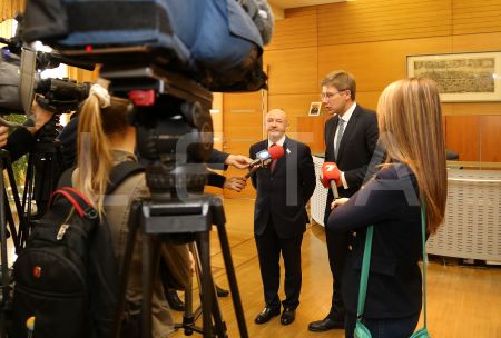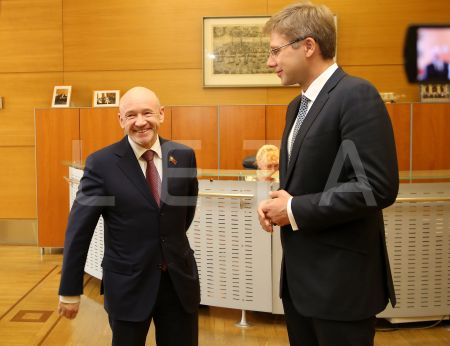 Rīgas domes priekšsēdētājs Nils Ušakovs (no kreisās) tiekas ar ...