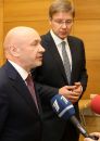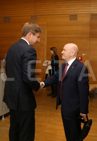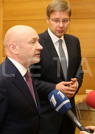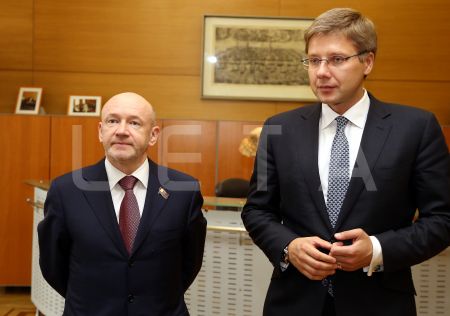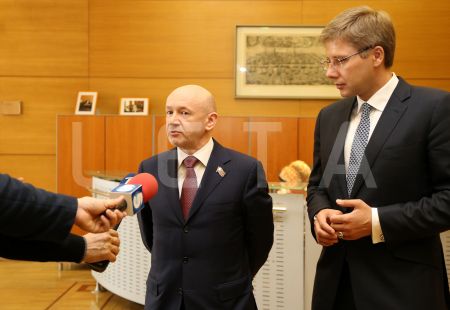 Rīgas domes priekšsēdētājs Nils Ušakovs (no labās) un Maskavas ...