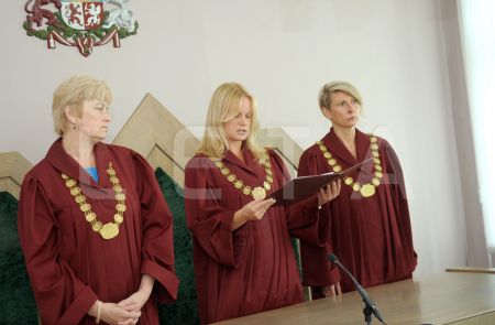 Tiesnese Iveta Bērziņa (vidū) nolasa spriedumu Rīgas apgabaltiesā ...