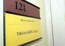 Rīgas apgabaltiesas tiesas sēžu zāle.