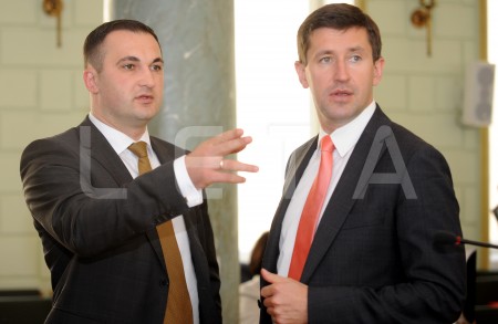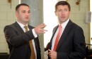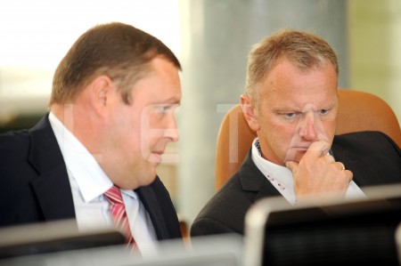 Tieslietu ministrs Gaidis Bērziņš (no labās) un iekšlietu ministrs ...