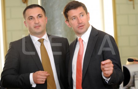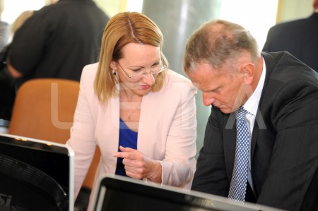 Tieslietu ministrs Gaidis Bērziņš un izglītības un zinātnes ministre ...