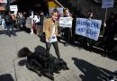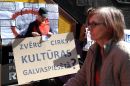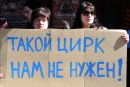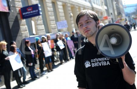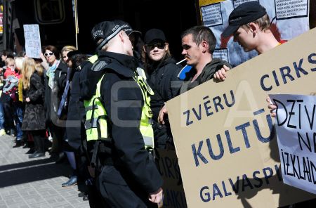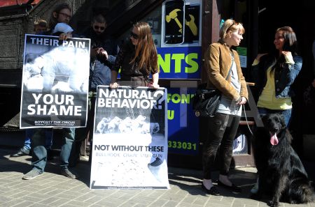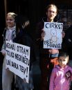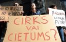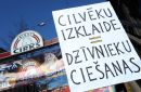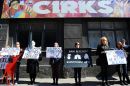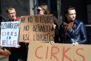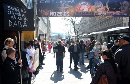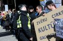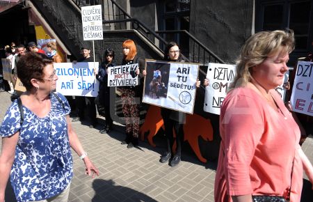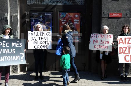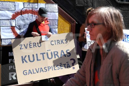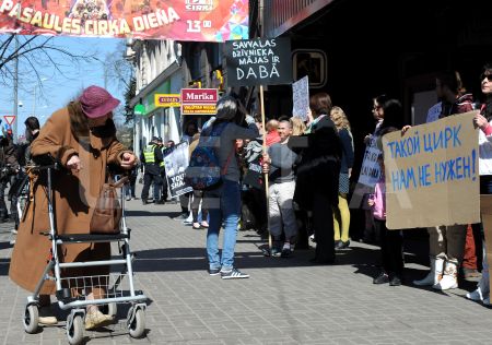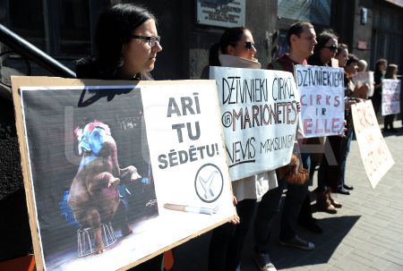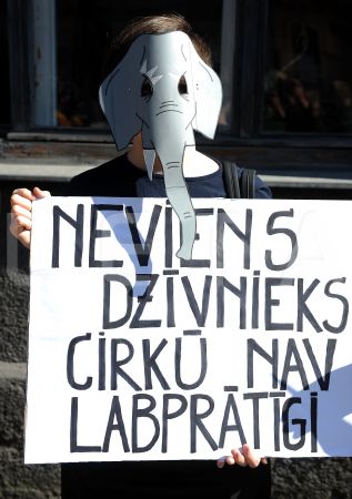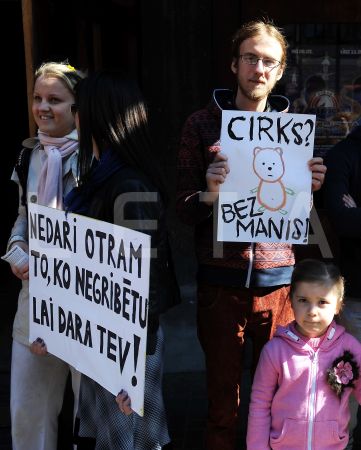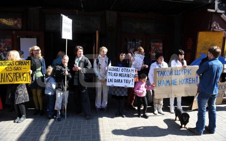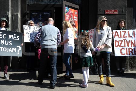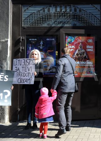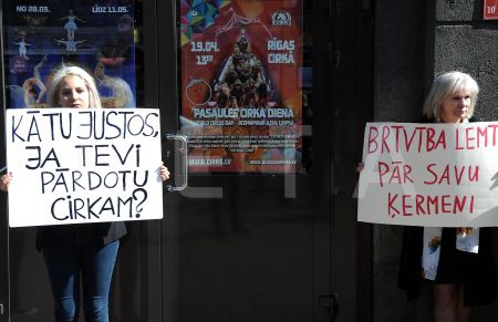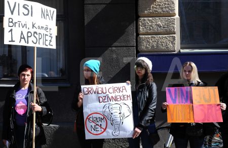 Pie Rīgas cirka notiek protests pret dzīvnieku izmantošanu cirkā.