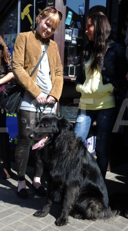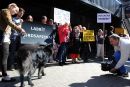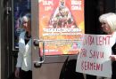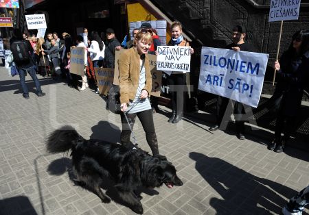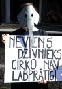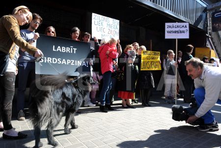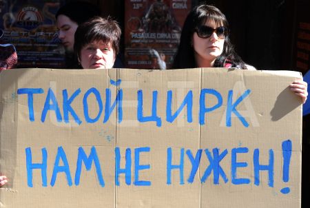 Suns pie Rīgas cirka, kur protests pret dzīvnieku izmantošanu cirkā.