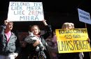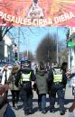 Policiti aiztur vīrieti pie Rīgas cirka, kur notiek protests pret ...