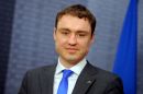 Igaunijas premjers Tāvi Reivass piedalās preses konferencē, kurā ...