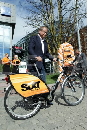 Jaunais velosipēds "SiXT" velo nomas atklāšanas pasākumā.