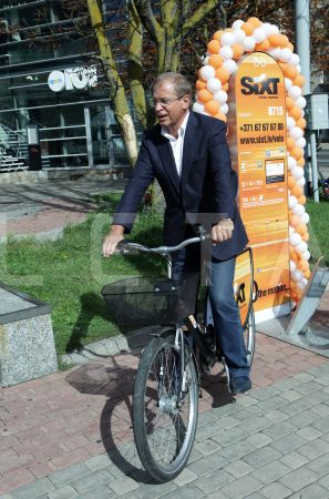 Rīgas domes vicemērs Andris Ameriks piedalās "SiXT" velo nomas ...