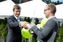 Rīgas domes vicemērs Andris Ameriks (no kreisās) un "Sixt" vadītājs ...