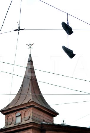 Vados iekarināti sporta apavi Lienes un Avotu ielas krustojumā.